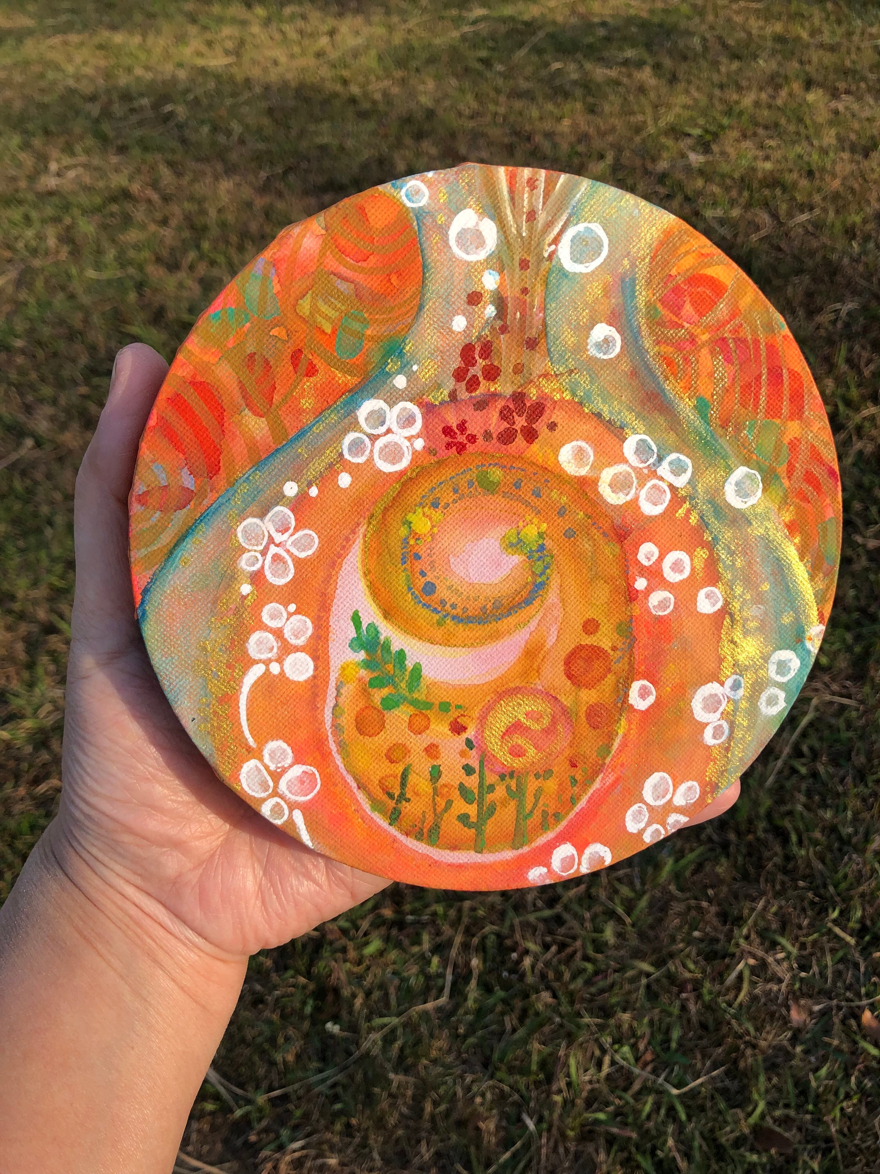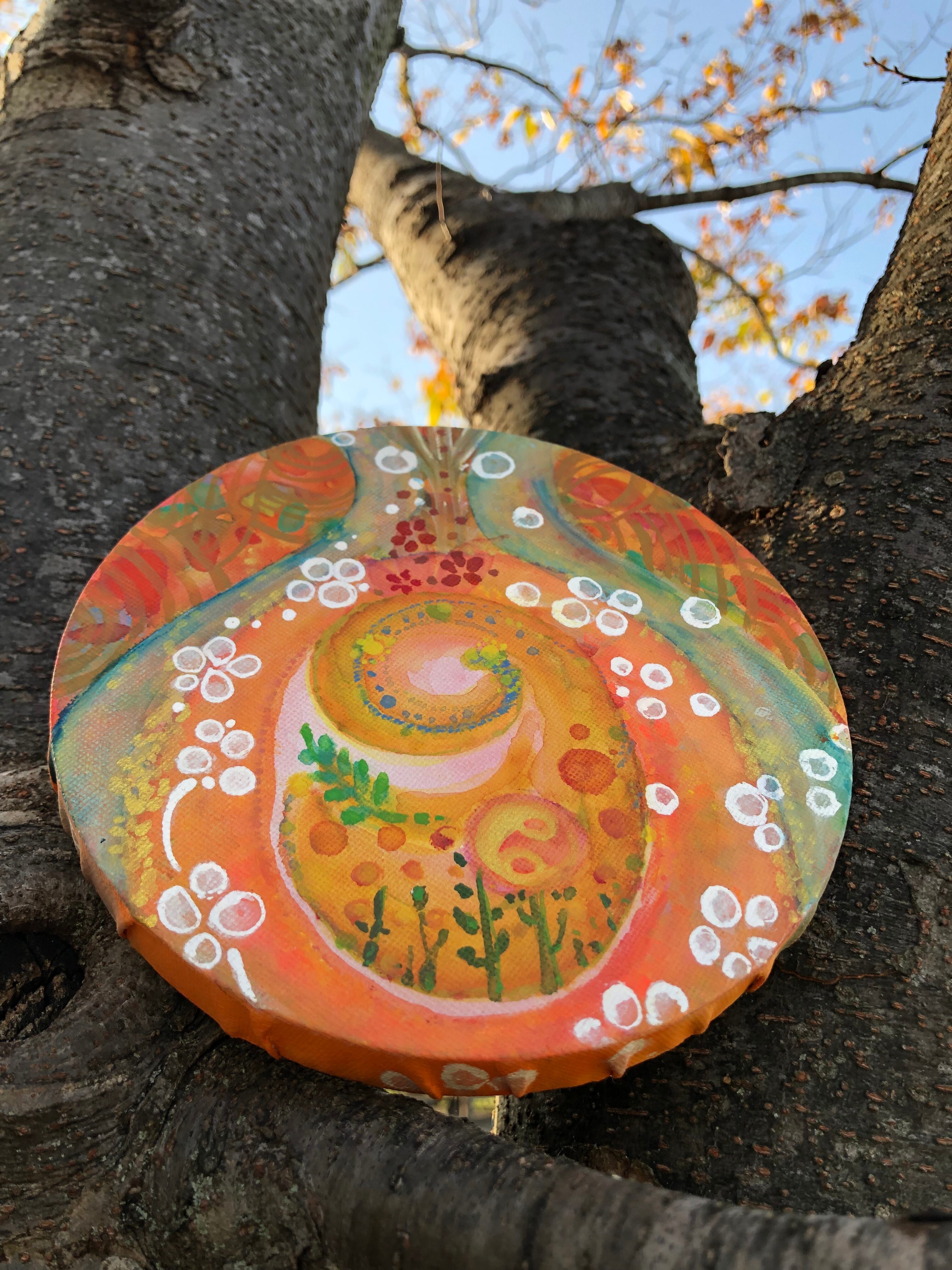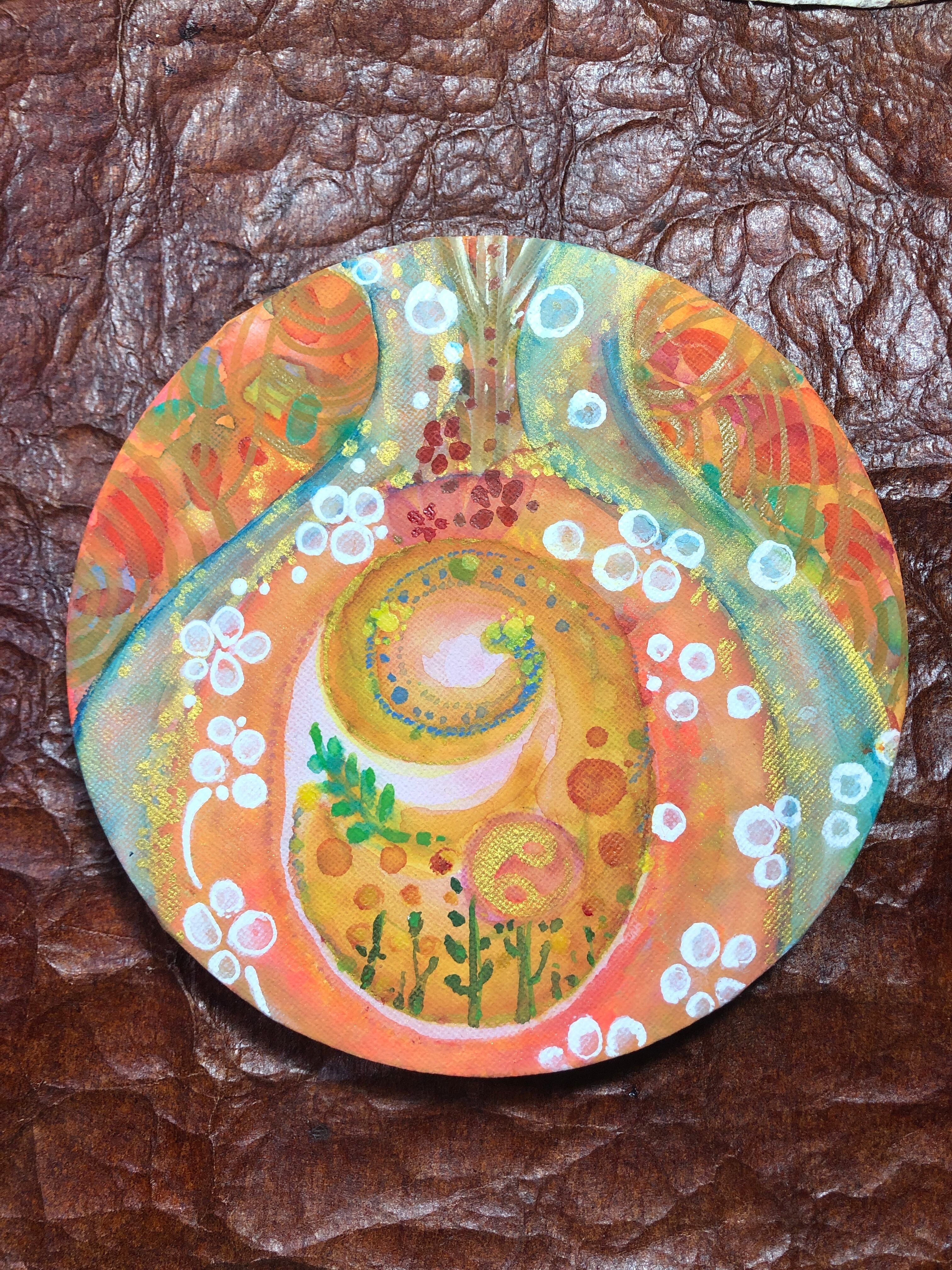 15センチの丸型キャンバスにアクリル絵の具で